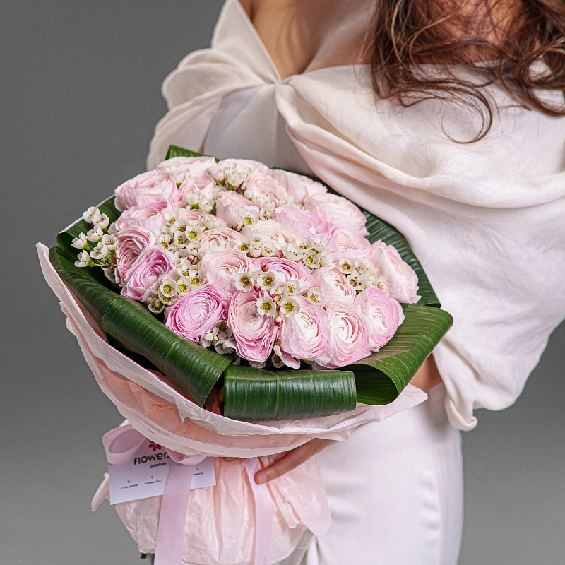 Букет из ранункулюсов и маттиолы "Утренняя прохлада"