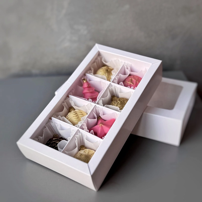 Новогодние шоколадные конфеты ручной работы — изысканное лакомство для настоящих ценителей сладкого. Каждая конфета создаётся вручную из премиального бельгийского шоколада, известного своим глубоким, насыщенным вкусом и бархатной текстурой. Они станут элегантным подарком к Новому году, приятным знаком внимания или стильным дополнением к праздничному столу, даря моменты наслаждения и особого настроения.
