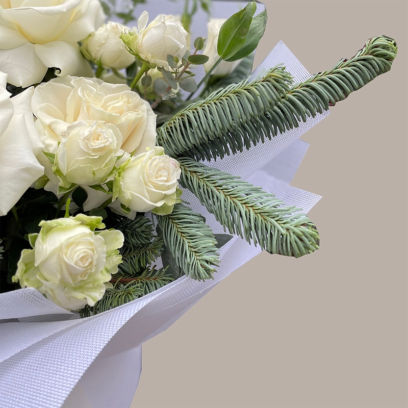 Зимний букет из роз и нобилиса "Хрустальный звон" - фото 5